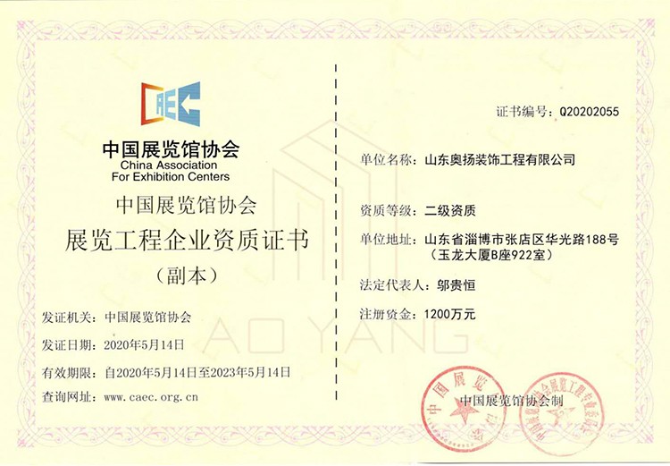 中國展覽館協(xié)會展覽工程企業(yè)資質(zhì)證書